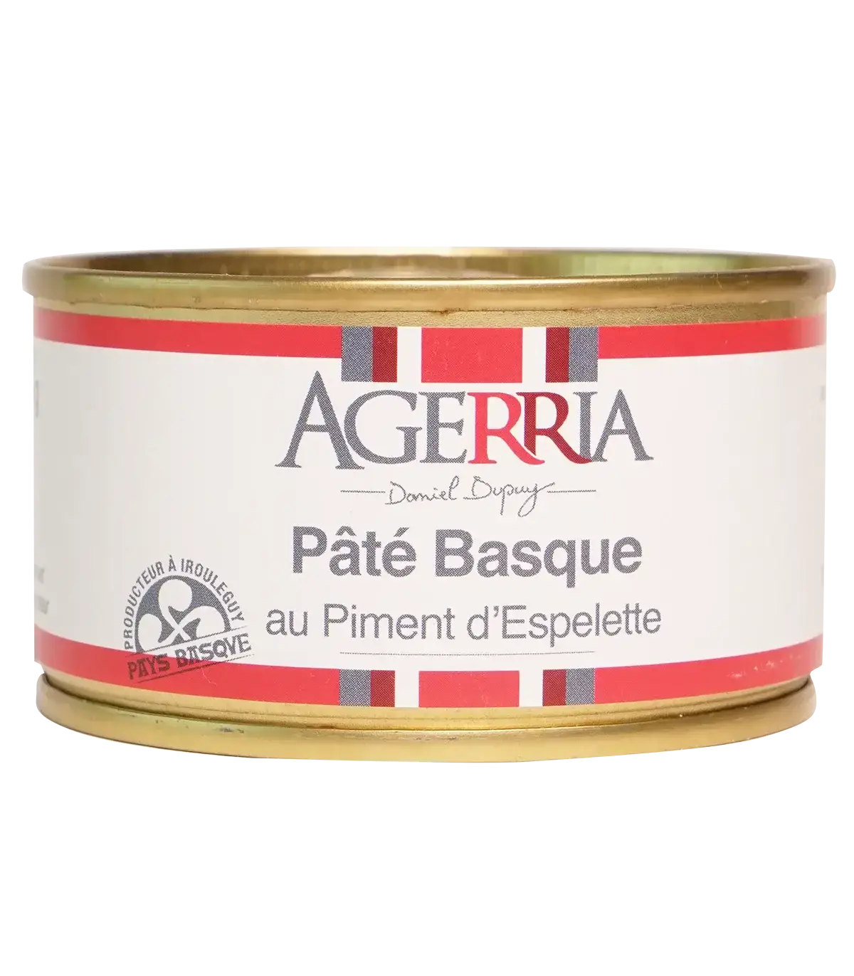 Délicieux pâté de porc au piment d'Espelette en 125g. Le piment d'Espelette lui confère son caractère fort et authentique.